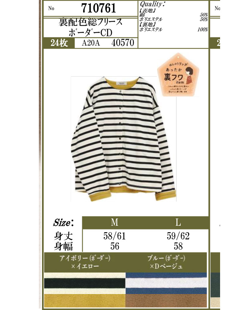 P000 裏配色ボーダーカーディガン(F2KA-710761)